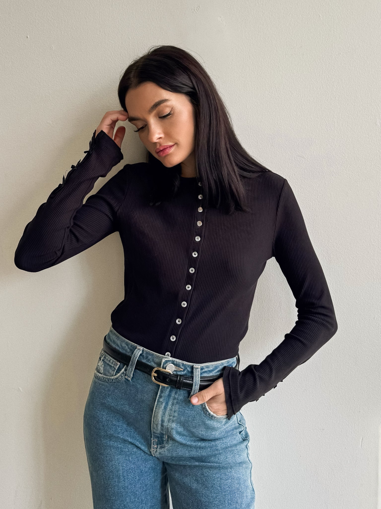 Layer up this winter season with our NEW Calla Ribbed Top! This cozy style features a front button closure with bow sleeve details. Pair this long sleeve with your favorite denim and uggs!