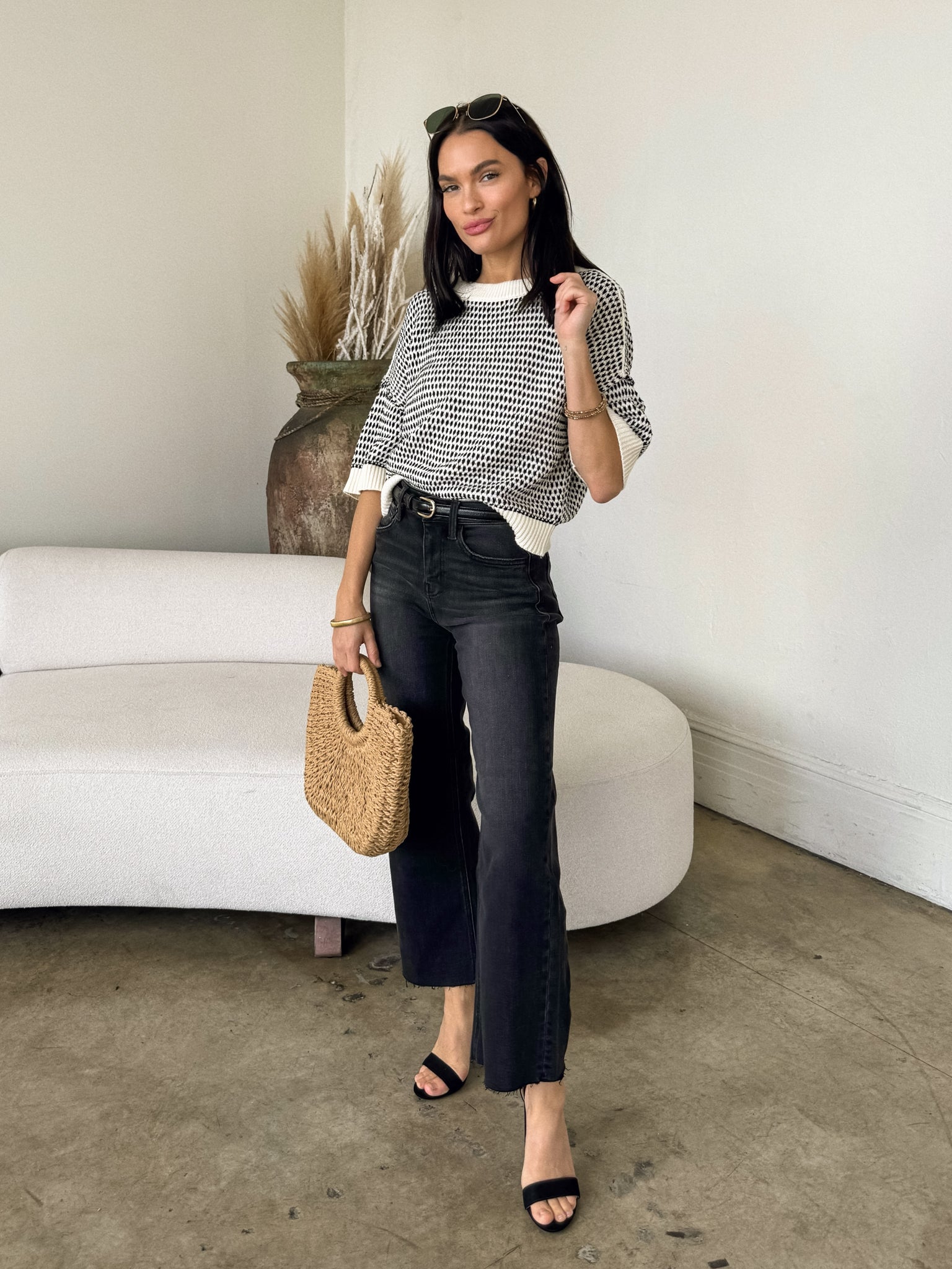 Elevate your style with our NEW Harvey Knit Top! Pair with a black mini skirt. tights. and boots for dinner and drinks with the girls! Bundle up with a black blazer and finish the look with gold jewelry.